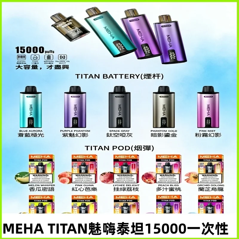 MEHA TITAN 泰坦 15000口拋棄式電子煙|高續航・強輸出・雙發霧化芯